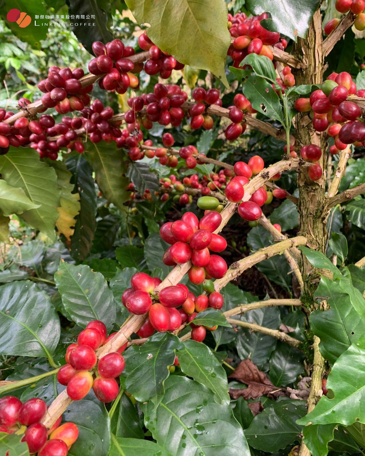 下圖:卡杜拉 Caturra 是阿拉比卡的天然矮化的品種,枝節短所以一個枝條上花開得密集,相對的果實也很密集,便於人員採收。