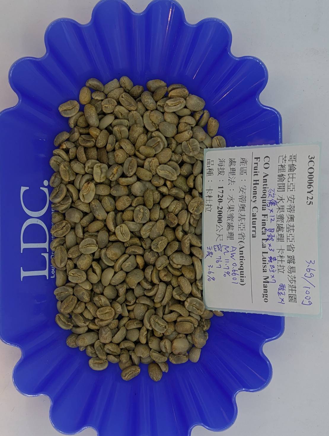 風味:乾香帶有熱帶水果、芒果乾,品飲時有熱帶水果、芒果乾、柑橘、黃肉李、奶油、烤堅果、黃金糖、熱帶水果風味明確、整體呈現土芒果酸質帶芒果乾甜感